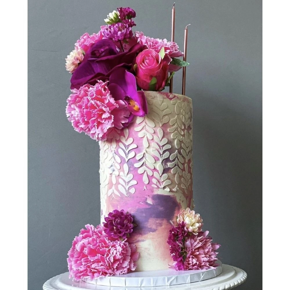 Angela Morrison’s extensive stencil collection lets you create beautifully elegant designs on your cake tiers, perfect for an array of occasions and themes, including weddings, birthdays, anniversaries, engagement celebrations and many more.