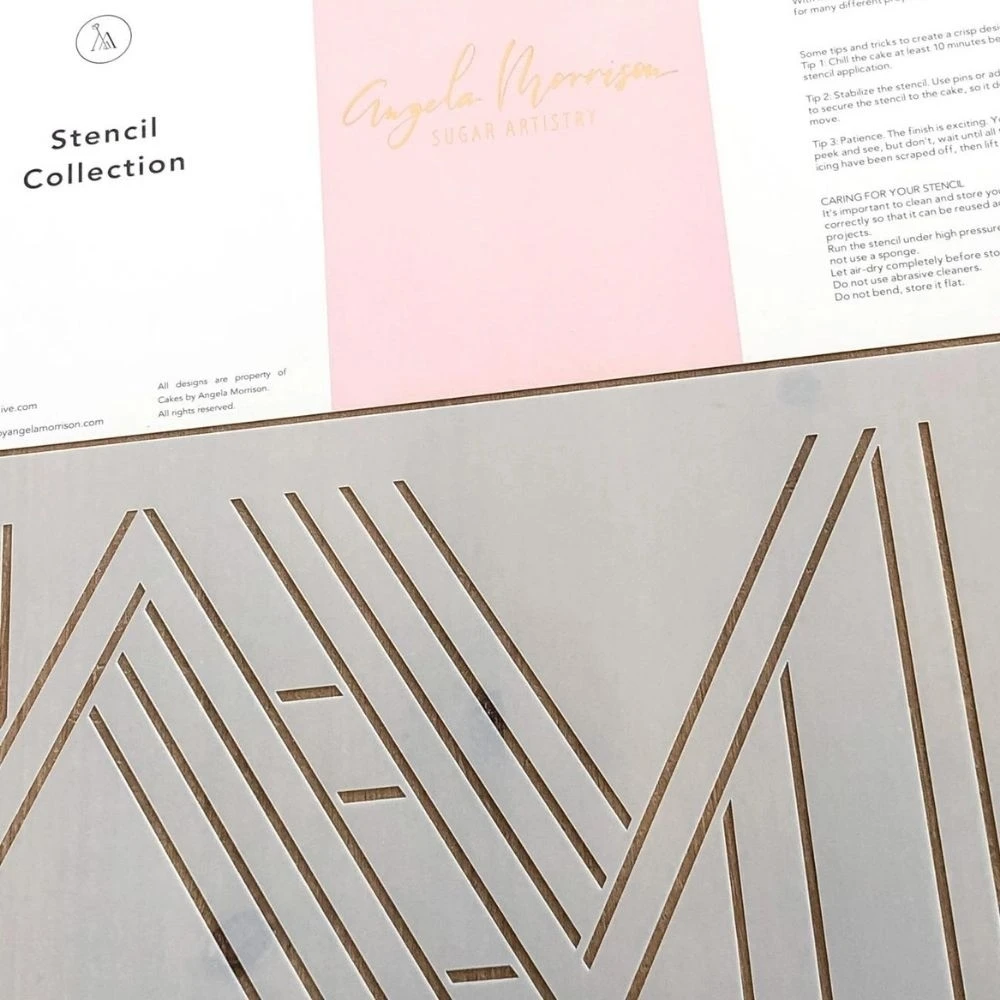 Angela Morrison’s extensive stencil collection lets you create beautifully elegant designs on your cake tiers, perfect for an array of occasions and themes, including weddings, birthdays, anniversaries, engagement celebrations and many more.