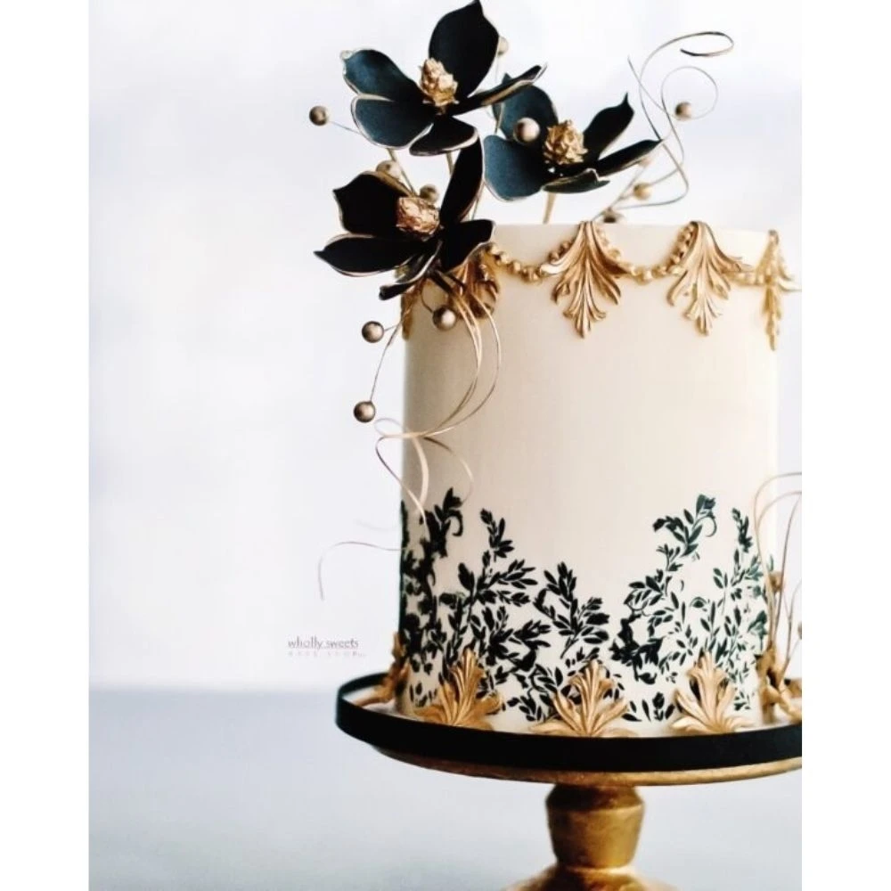 Add texture, layer colours, or add background patterns to your cake tiers with Angela Morrisonโs stencil designs.