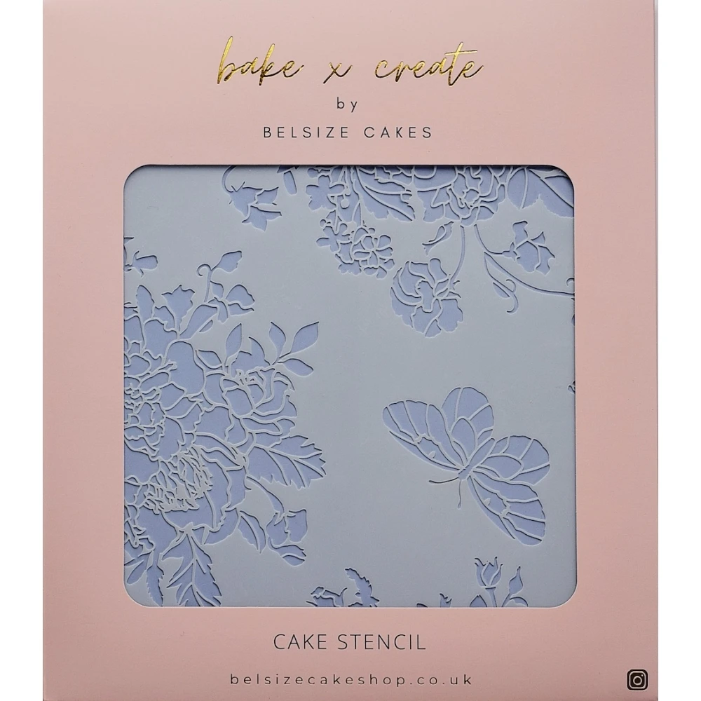 This stencil features a beautiful floral design with butterflies, adding elegance and class to your cakes and perfect for experimenting with tone on tone textures, metallic sprays, contrasting highlights and much more.