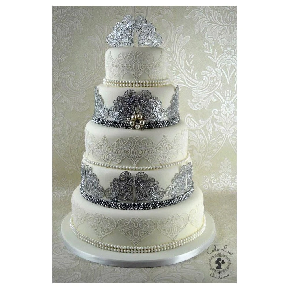 A chain of interweaving love birds creates striking, art nouveau style hearts, designed exclusively with wedding cakes in mind.