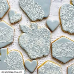 Cake Lace is so easy to use – simply make to the manufacturers instructions, spreading onto the mat and placing in the oven at 80ยฐC. Bake for 12 to 15 minutes, take out of the oven and cool for five minutes; your Cake Lace is now ready to use! From start to finish your Cake Lace could be ready to use in less than 30 minutes.