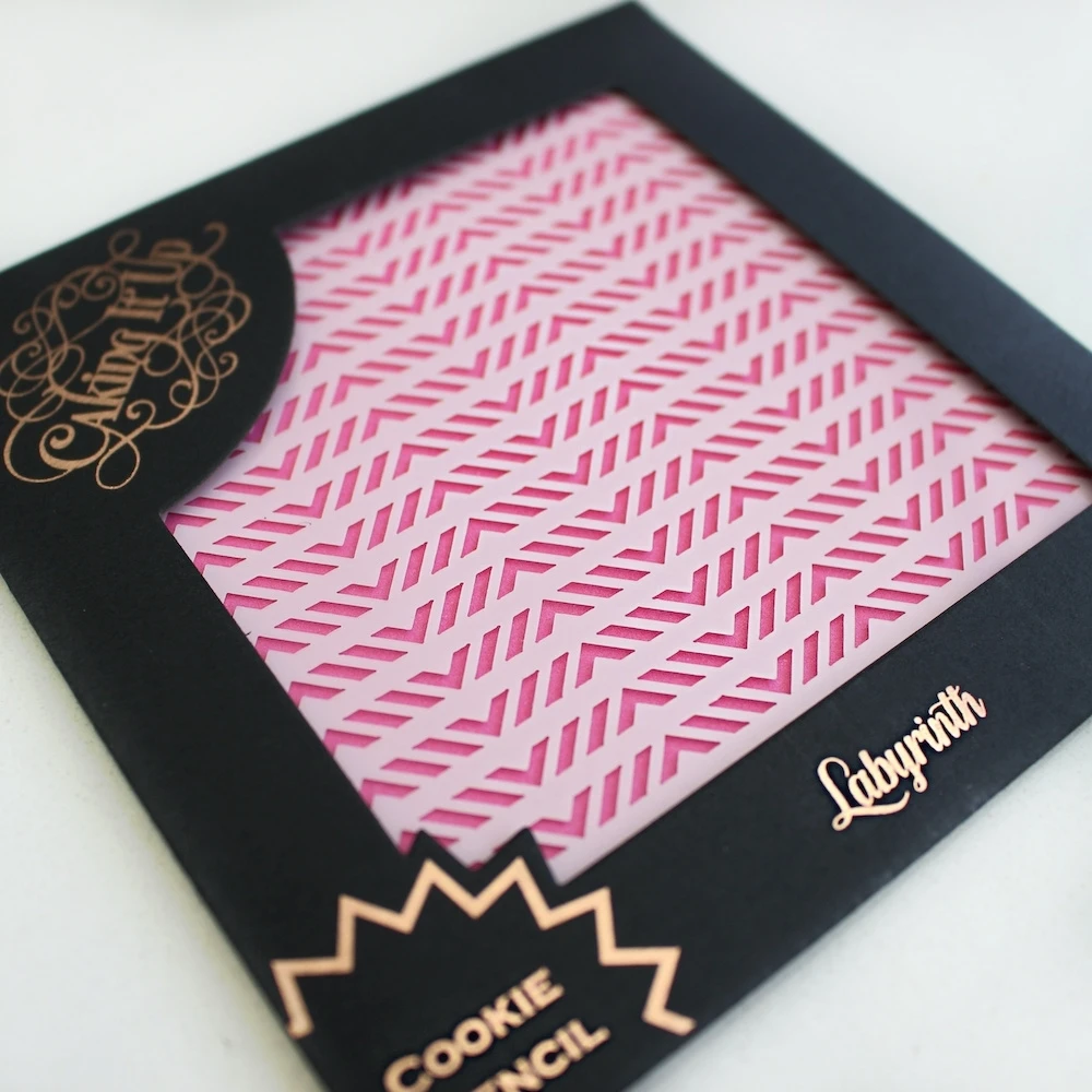 This Labyrinth acrylic stencil is perfect for making unique patterned effects with different colours and highlights. Ideal for everything from birthday party cookies to themed bakes.