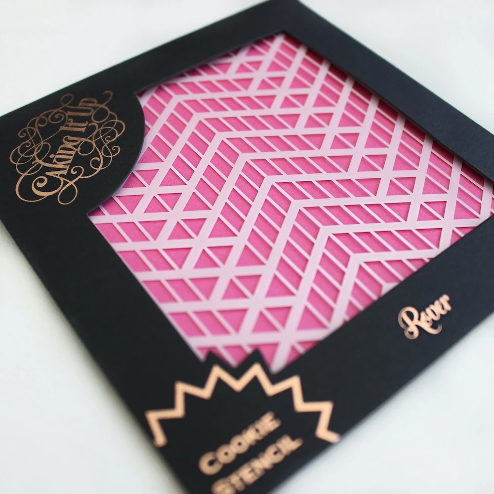 This Rover acrylic stencil is perfect for adding a unique zig-zag or chevron-inspired effect to your bakes, to be enhanced with your choice of colours and highlights. The only limit is your imagination!