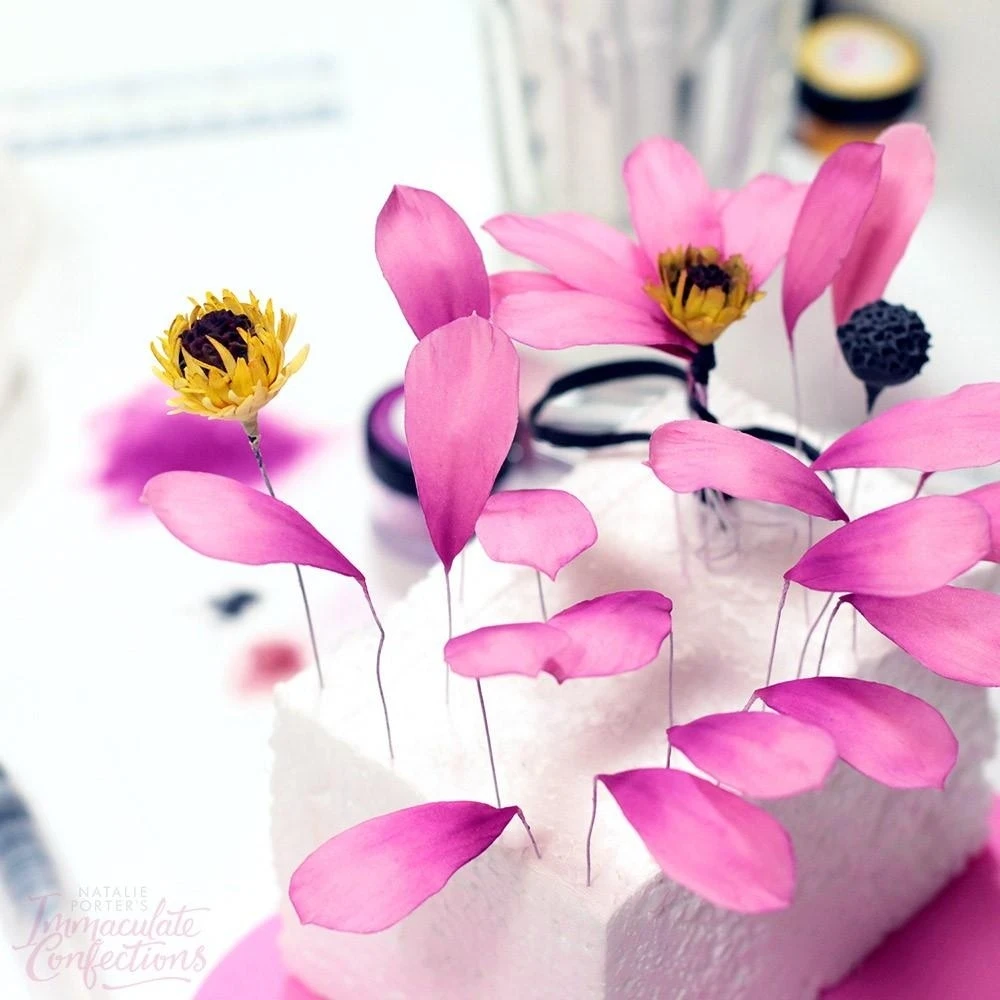 Making an amazing variety of edible petals and leaves for cakes, whether you’re crafting some sugar dahlias, daisies, succulents, sunflowers, mistletoe, Ruscus, lilies, eucalyptus and more.