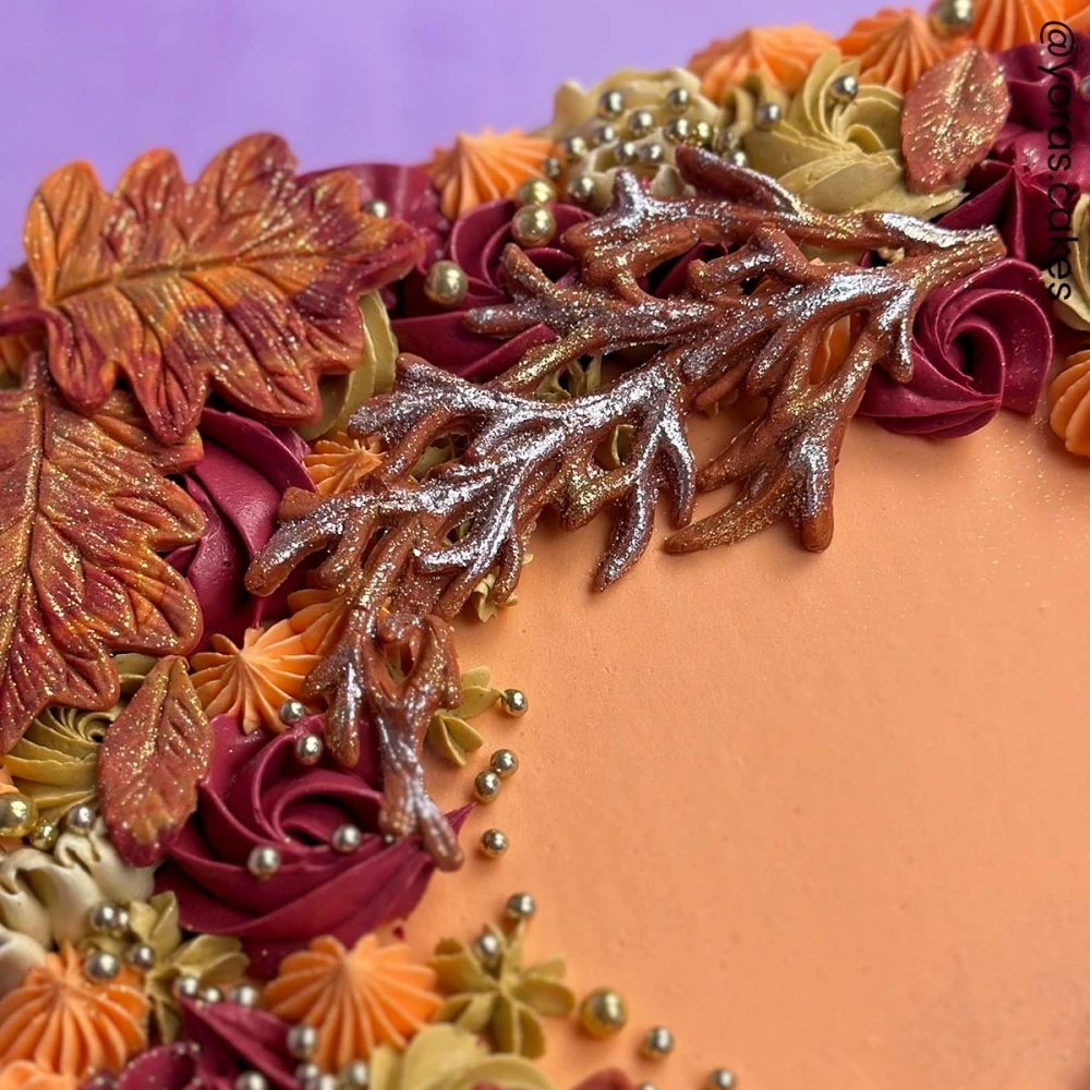 This genius mould design allows you to create flawless and realistic autumn leaves, branches and berries. The mould includes designs for two maple leaves, berries, a bare branch and a sprig.