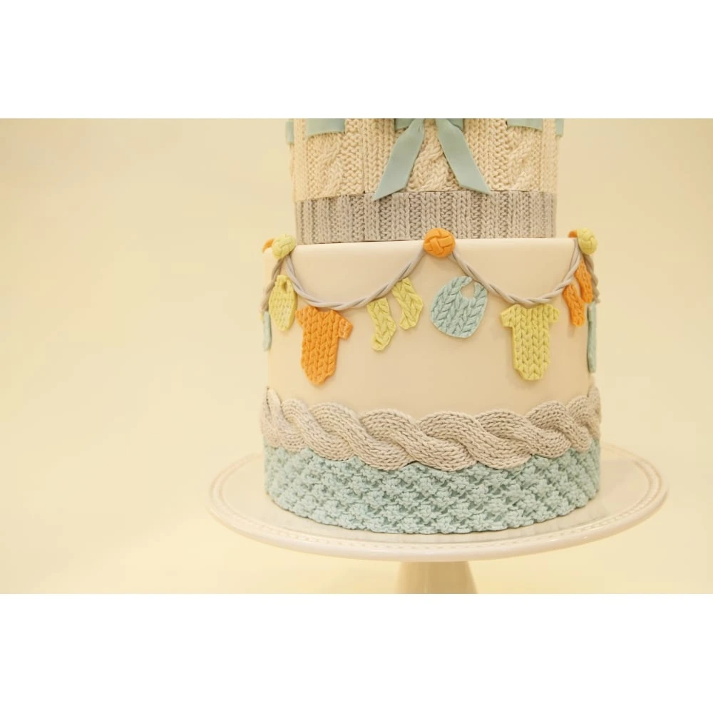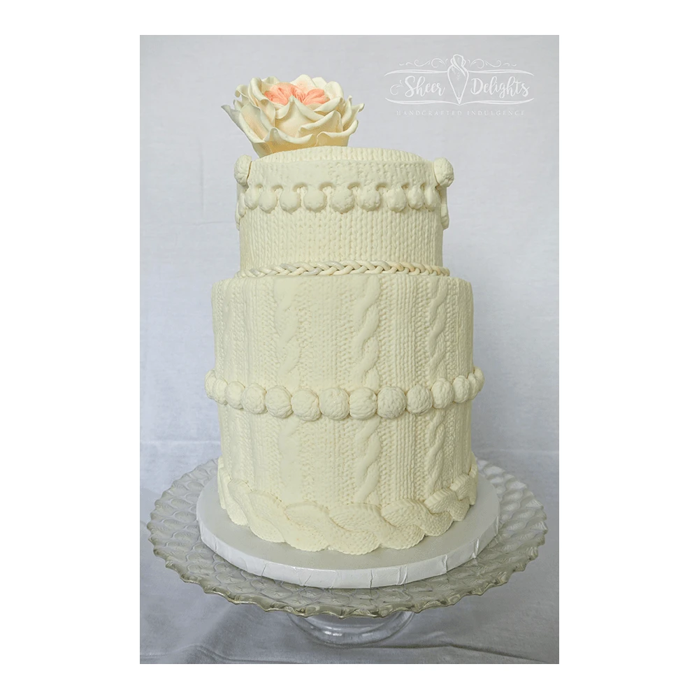 The mould features a cable knit pattern that will wrap around your cake tier and fit together perfectly so you canโt tell where the patter starts or stops. It combines delicate cable knitting to create something the likes of which has never been seen.