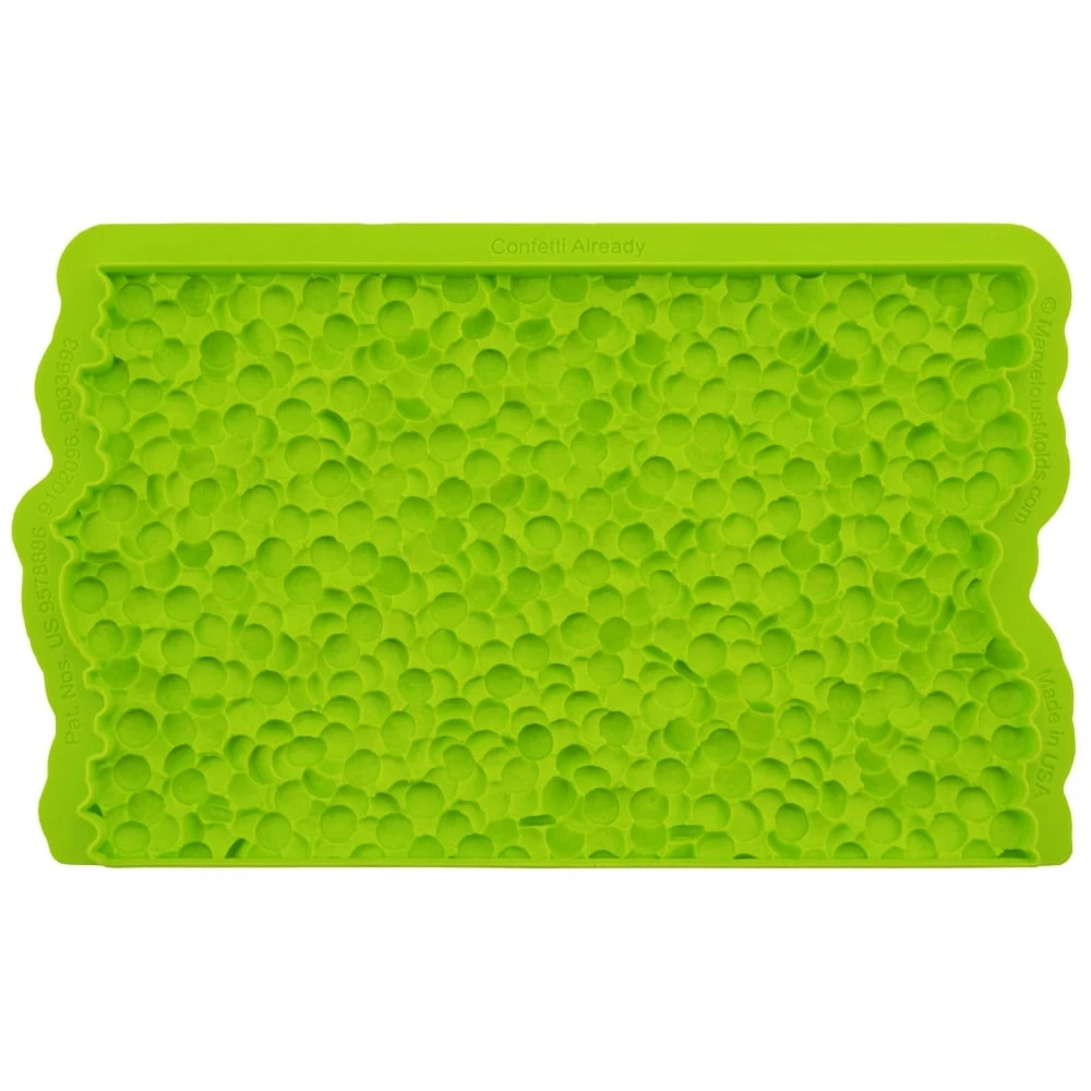 No longer will you have to painstakingly add confetti to your cakes. With the Confetti Already Simpress Mould by Marvelous Molds, you can add panels of gorgeous confetti in no time at all.