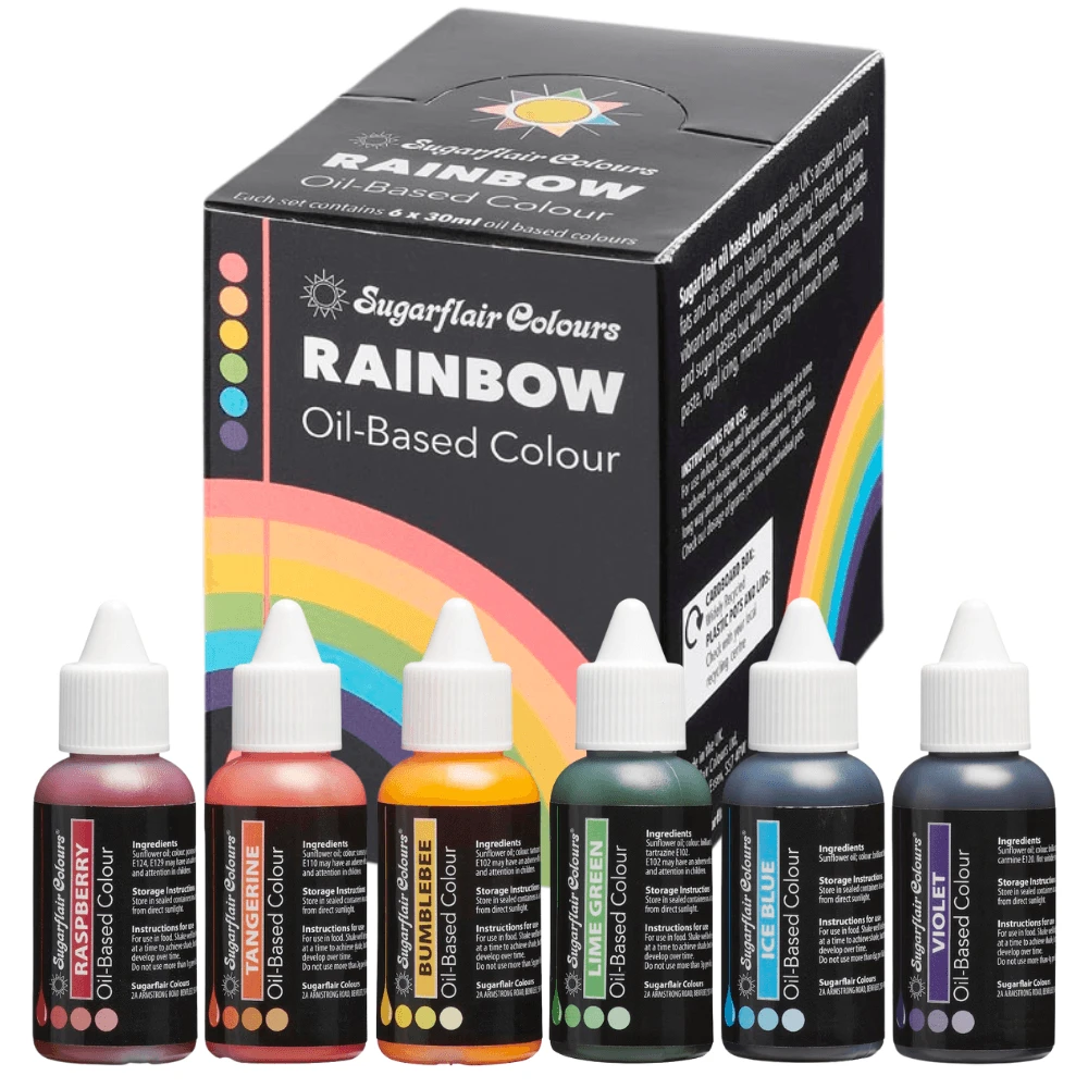 Add vibrant pops of colour to your cakes and decorations using Sugarflair’s Rainbow Set Of 6 oil based food colourings.