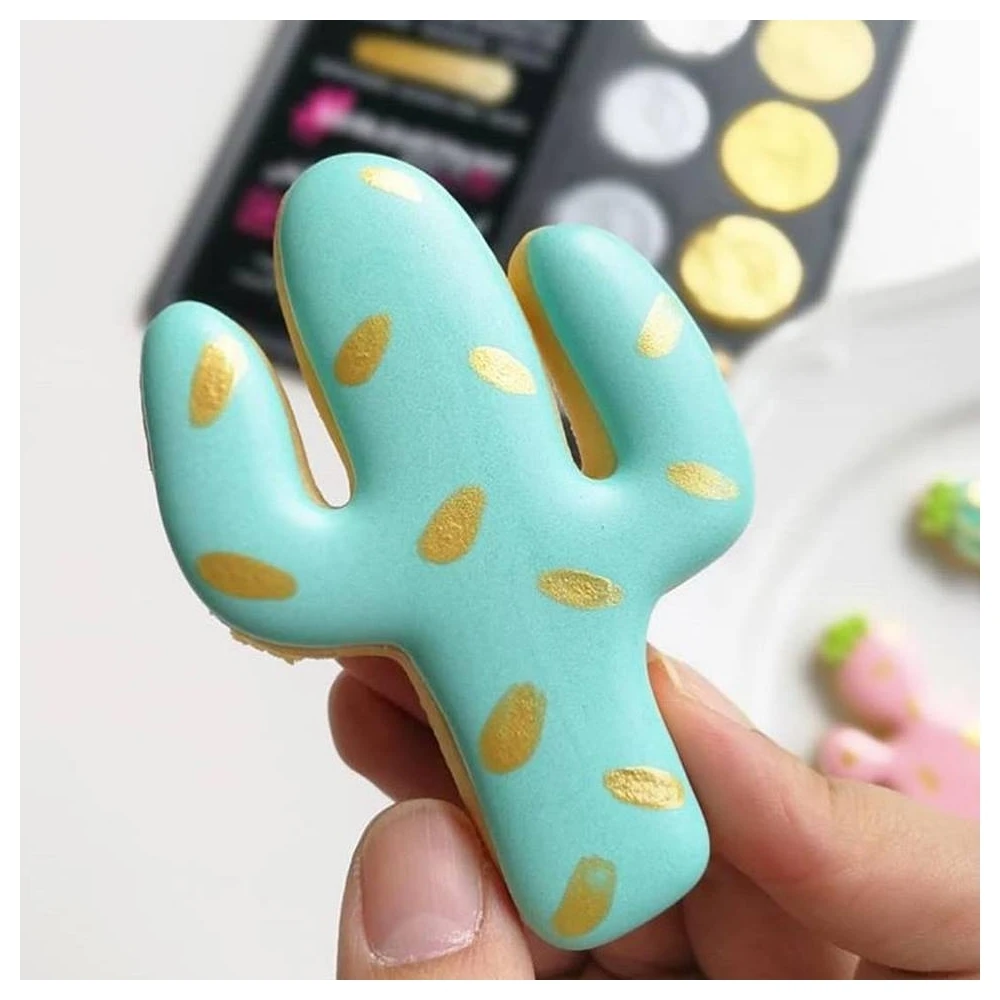 These art paints feature a metallic shimmer/finish once dried, providing your projects with some extra glitz and glamour – perfect for using on various mediums including: sugarpaste and fondant, modelling paste, flower paste, marzipan, royal icing, macarons, American crusted butter cream, sugar clay and more.